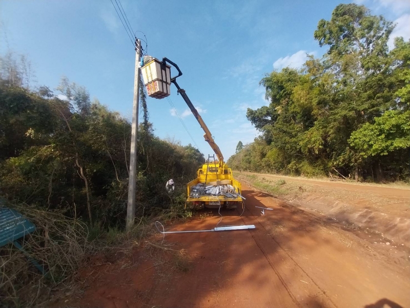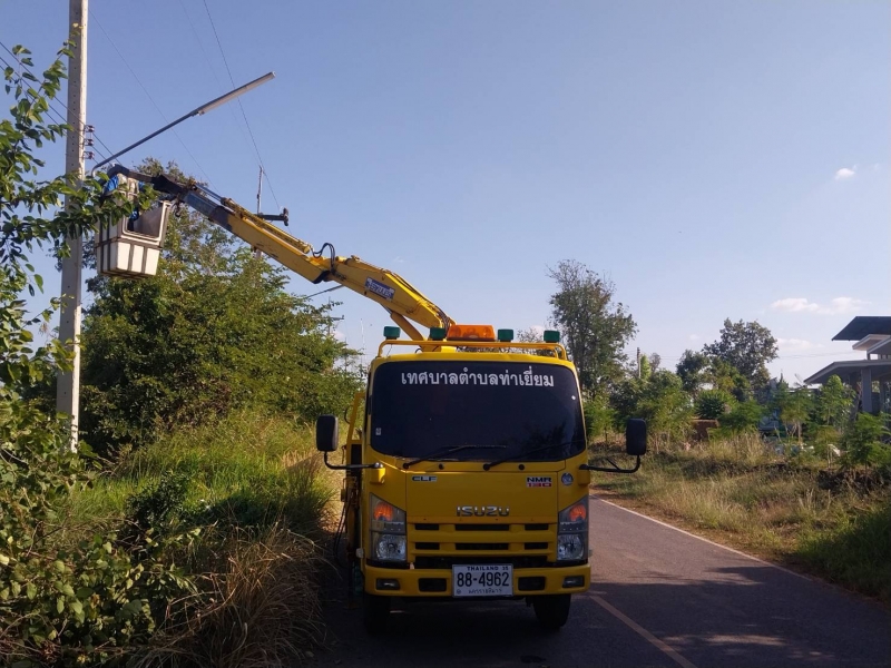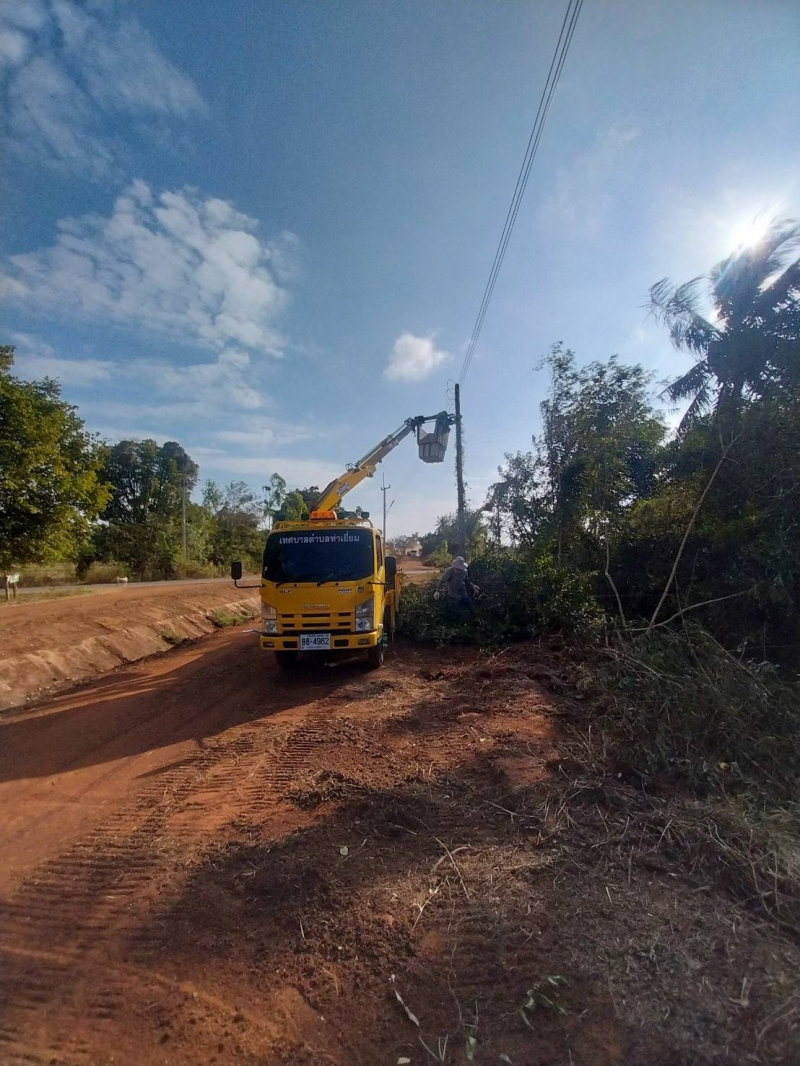 เจ้าหน้าที่กองช่างและเจ้าหน้างานป้องกันภัยฯ ดำเนินการติดตั้งโคมไฟสาธารณะและตัดกิ่งไม้ที่กีดขวางการติดตั้งโคมไฟ ณ บ้านโนนสะอาด หมู่ที่ 9 ต. ท่าเยี่ยม อ.โชคชัย จ.นครราชสีมา
