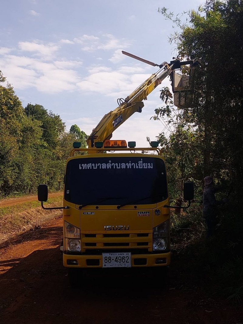 วันที่ 7 มกราคม 2569 เจ้าหน้าที่กองช่างและเจ้าหน้างานป้องกันภัยฯ ดำเนินการติดตั้งโคมไฟสาธารณะและตัดกิ่งไม้ที่กีดขวางการติดตั้งโคมไฟ ณ บ้านโนนสะอาด หมู่ที่ 9 ต. ท่าเยี่ยม อ.โชคชัย จ.นครราชสีมา