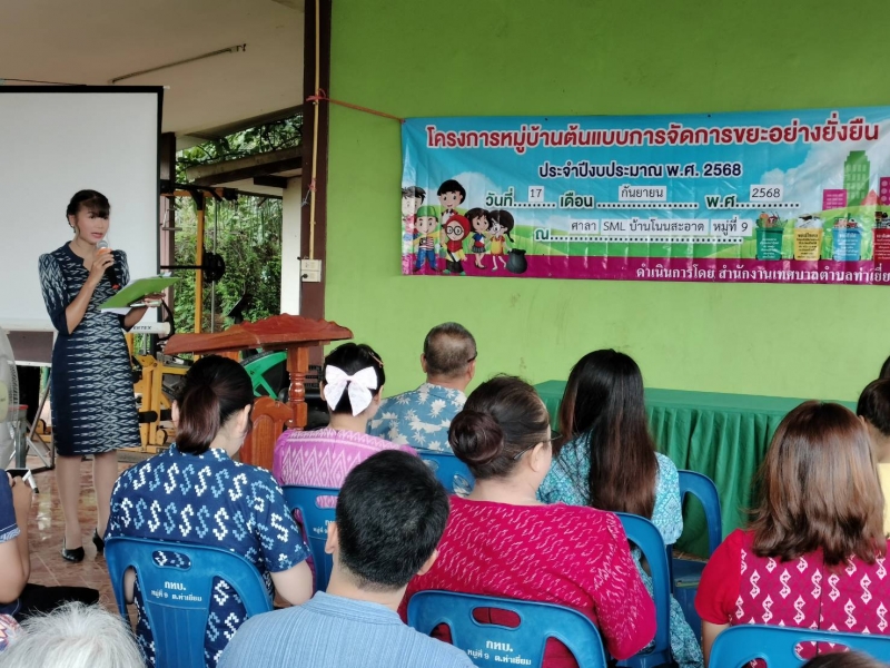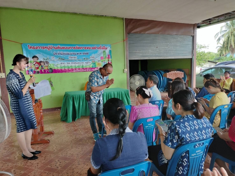 วันที่ 17 กันยายน 2568 นำโดย นางฉลิัม มุขกระโทก รองนายกเทศมนตรีตำบลท่าเยี่ยม พร้อมด้วย สมาชิกสภาเทศบาล กองสาธารณสุขฯ พนักงานเทศบาล ผู้นำชุมชน ผู้นำสุขภาพ (อสม.)และประชาชน ได้เข้าร่วมโครงการหมู่บ้านต้นแบบการจัดการขยะแบบยั่งยืน ประจำปีงบประมาณ 2568 ณ ศาลา SMLหมู่บ้านโนนสะอาด หมู่ที่ 9 ต.ท่าเยี่ยม อ.โชคชัย จ.นครราชสีมา