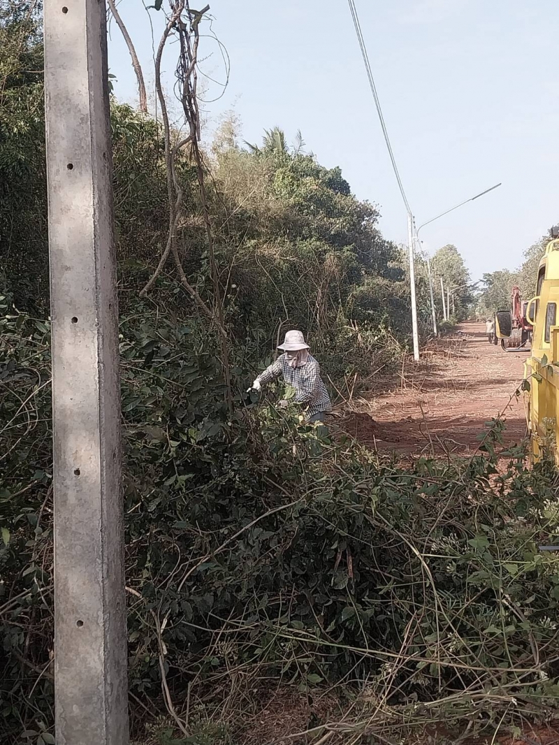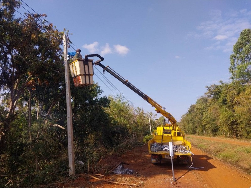 เจ้าหน้าที่กองช่างและเจ้าหน้างานป้องกันภัยฯ ดำเนินการติดตั้งโคมไฟสาธารณะและตัดกิ่งไม้ที่กีดขวางการติดตั้งโคมไฟ ณ บ้านโนนสะอาด หมู่ที่ 9 ต. ท่าเยี่ยม อ.โชคชัย จ.นครราชสีมา
