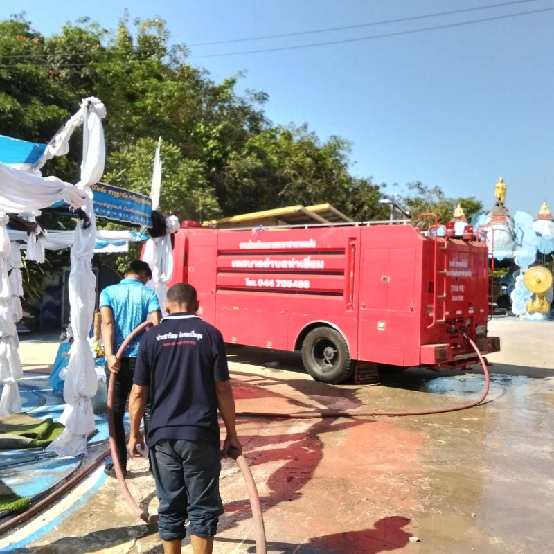 วันที่ 21 กุมภาพันธ์ 2569 งานป้องกันและบรรเทาสาธารณภัย เทศบาลตำบลท่าเยี่ยม นำรถบรรทุกน้ำดำเนินการฉีดล้างทำความสะอาดบริเวณวัดป่าโนนสะอาด ม.9 ต. ท่าเยี่ยม อ.โชคชัย จ.นครราชสีมา เพื่อเป็นการทำนุบำรุงศาส