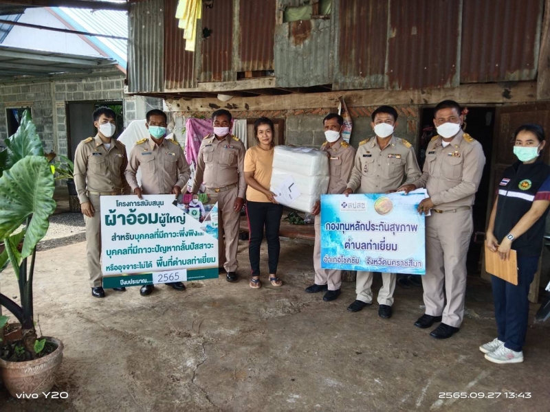 วันที่ 27 กันยายน 2565 นายสุนทร หาญสูงเนิน นายกเทศมนตรีตำบลท่าเยี่ยม นายสุเวช ณะวงวิเศษ ปลัดเทศบาลตำบลท่าเยี่ยม และสมาชิกสภาเทศบาลตำบลท่าเยี่ยม มอบผ้าอ้อมผู้ใหญ่ให้บุคคลที่มีภาวะพึ่งพิงและบุคคลที่มีปั