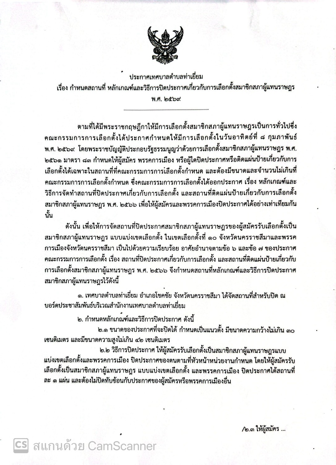 กำหนดสถานที่ หลักเกณฑ์และวิธีการเลือกตั้งสมาชิกสภาผู้แทนราษฎร |
