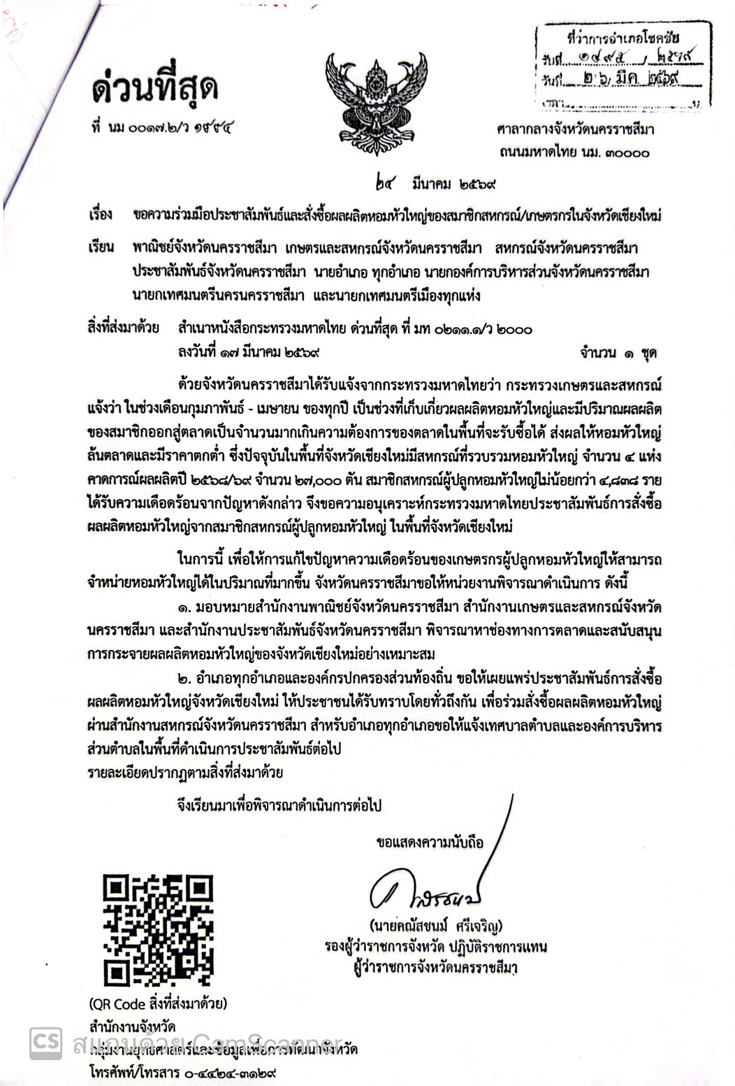 ประชาสัมพันธ์การสั่งซื้อผลผลิตหอมหัวใหญ่ของสมาชิกสหกรณ์เกษตร/ในจังหวัดเชียงใหม่