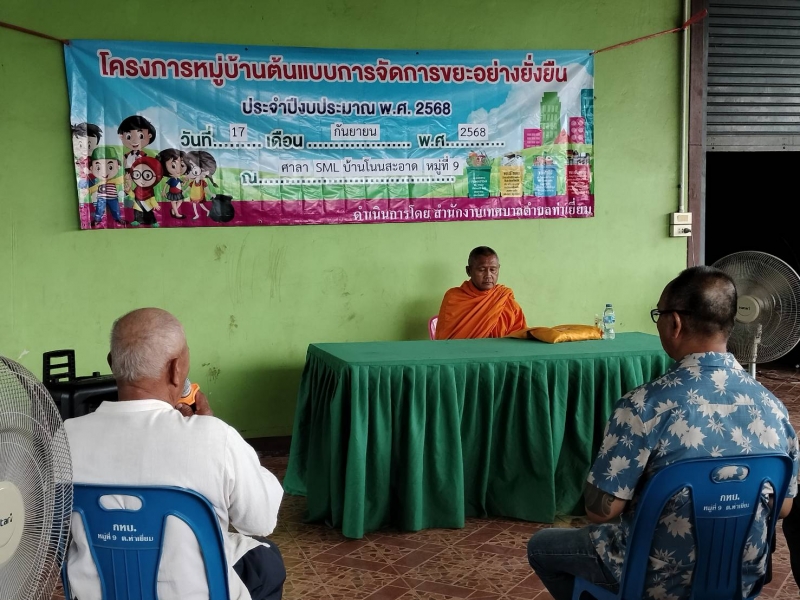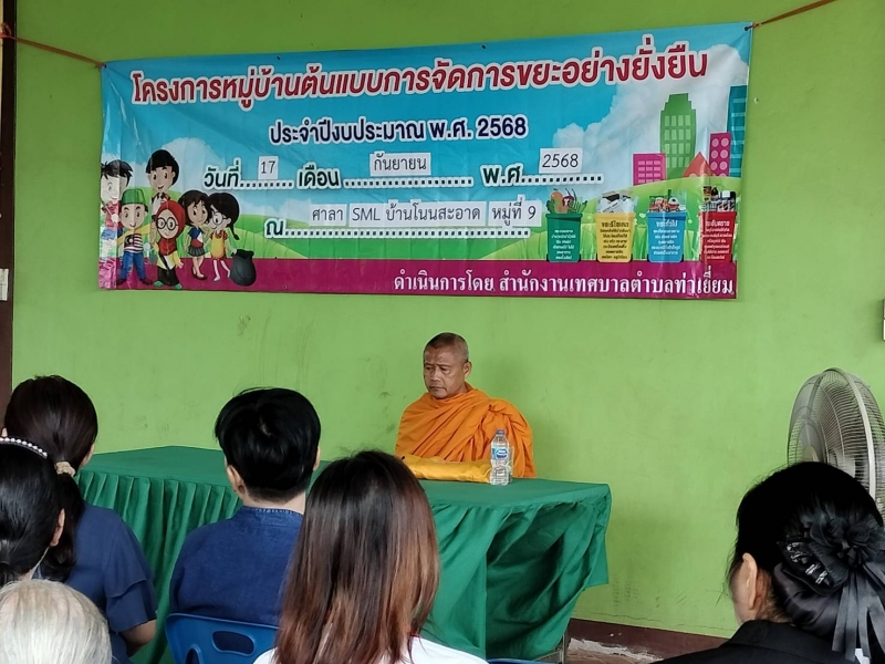 วันที่ 17 กันยายน 2568 นำโดย นางฉลิัม มุขกระโทก รองนายกเทศมนตรีตำบลท่าเยี่ยม พร้อมด้วย สมาชิกสภาเทศบาล กองสาธารณสุขฯ พนักงานเทศบาล ผู้นำชุมชน ผู้นำสุขภาพ (อสม.)และประชาชน ได้เข้าร่วมโครงการหมู่บ้านต้นแบบการจัดการขยะแบบยั่งยืน ประจำปีงบประมาณ 2568 ณ ศาลา SMLหมู่บ้านโนนสะอาด หมู่ที่ 9 ต.ท่าเยี่ยม อ.โชคชัย จ.นครราชสีมา