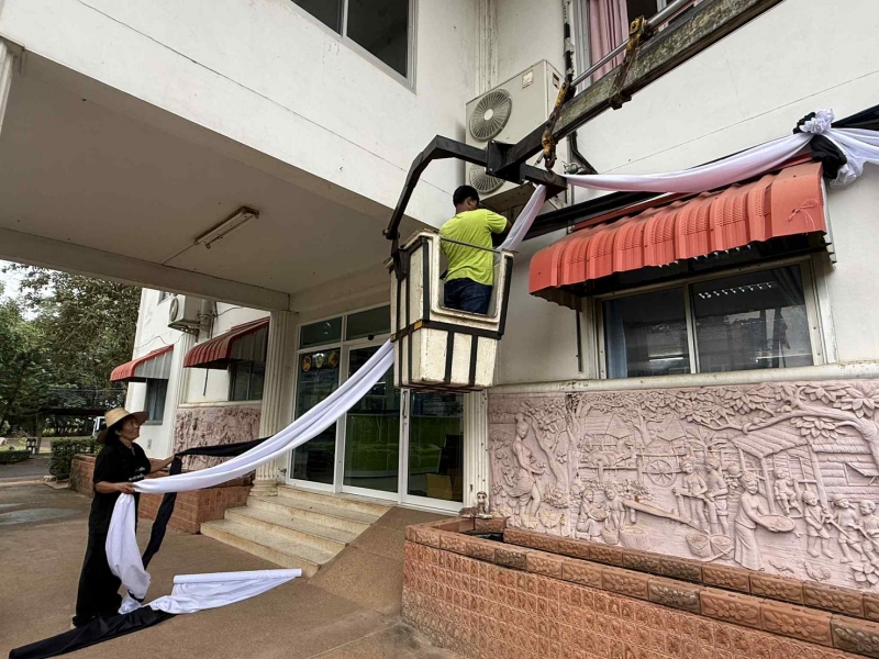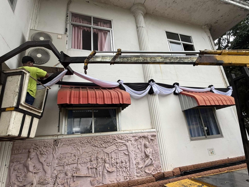 วันที่ 30 ตุลาคม 2568 เจ้าหน้าที่งานป้องกันฯและเจ้าหน้าที่กองช่างเทศบาลตำบลท่าเยี่ยม ดำเนินงานติดตั้งป้ายสมเด็จพระนางเจ้าสิริกิติ์ พระบรมราชินีนาถ พระบรมราชชนนีพันปีหลวง พร้อมผูกผ้าประดับอาคารสถานที่ส