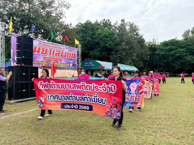 วันที่ 1 พฤศจิกายน 2568 นายสุนทร หาญสูงเนิน นายกเทศมนตรีตำบลท่าเยี่ยม พร้อมคณะผู้บริหาร สมาชิกสภาเทศบาลตำบลท่าเยี่ยม เปิดพิธีโครงการแข่งขันกีฬาต้านยาเสพติด ประจำปีงบประมาณ 2569 ณ สนามกีฬาเทศบาลตำบลท่