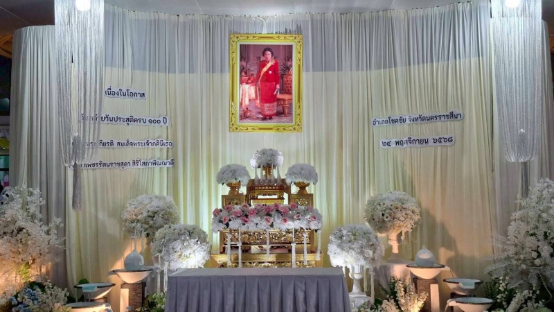 เวลา 08.00 น. พิธีวางพุ่มดอกไม้ถวายสักการะสมเด็จพระเจ้าภคินีเธอฯ ณ วัดใหม่สระประทุม