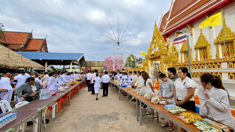 เวลา 06.30 น. พิธีเจริญพระพุทธมนต์และตักบาตรถวายพระราชกุศล
