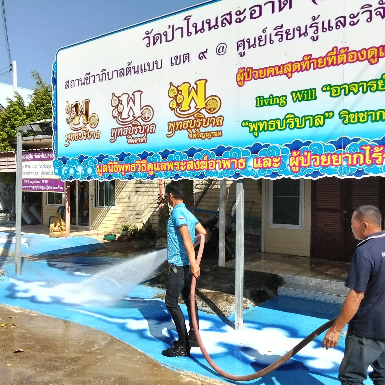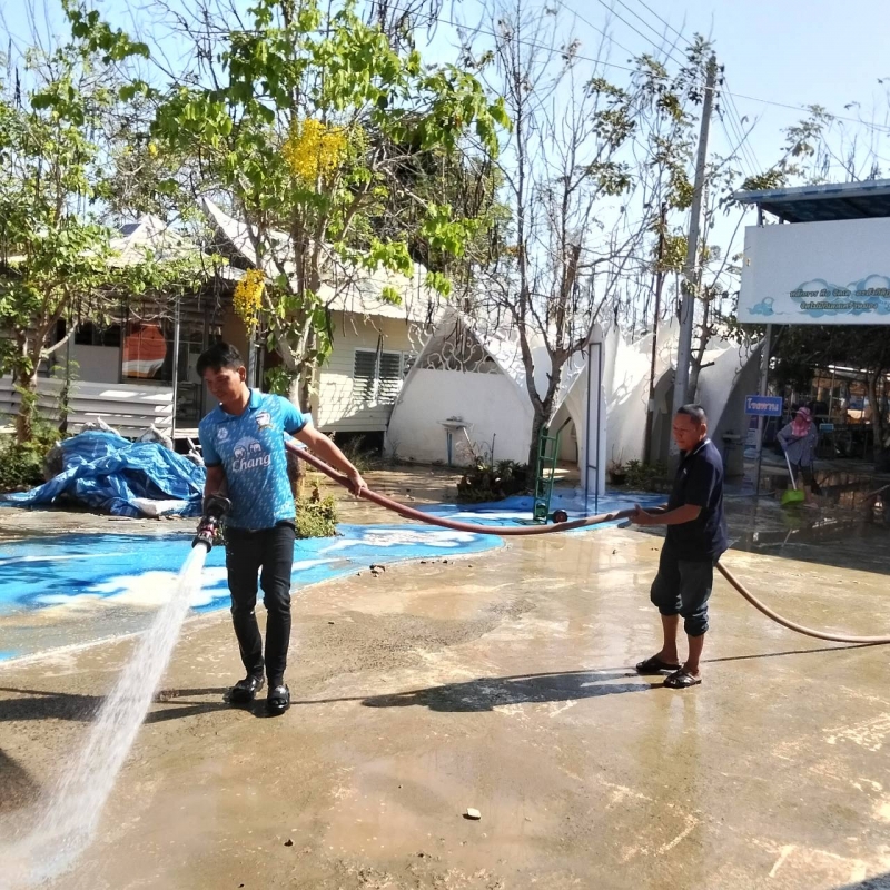 วันที่ 21 กุมภาพันธ์ 2569 งานป้องกันและบรรเทาสาธารณภัย เทศบาลตำบลท่าเยี่ยม นำรถบรรทุกน้ำดำเนินการฉีดล้างทำความสะอาดบริเวณวัดป่าโนนสะอาด ม.9 ต. ท่าเยี่ยม อ.โชคชัย จ.นครราชสีมา เพื่อเป็นการทำนุบำรุงศาส