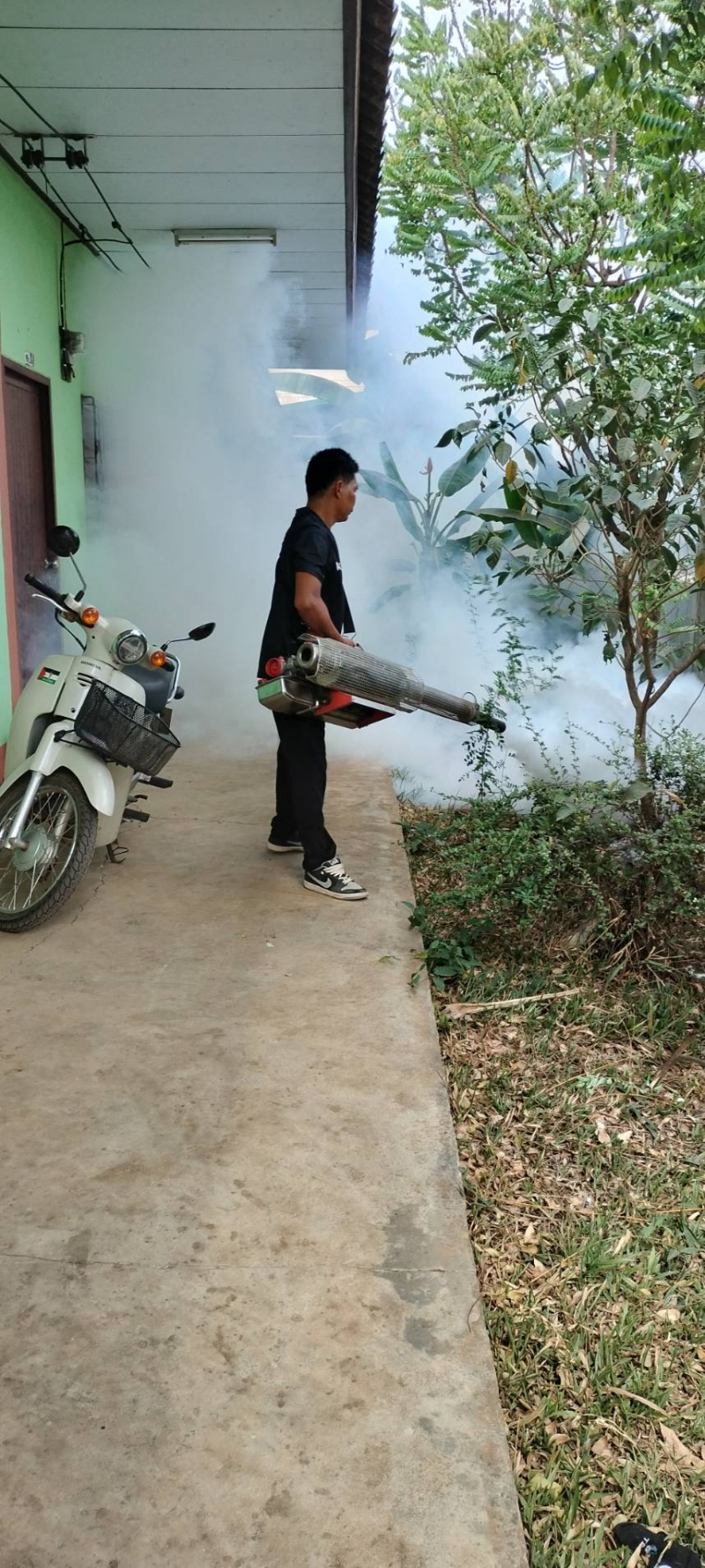 วันที่ 21 เมษายน 2569 กองสาธารณสุขและสิ่งแวดล้อมเทศบาลตำบลท่าเยี่ยม ได้ดำเนินการพ่นหมอกควัน เพื่อควบคุมโรคไข้เลือดออกในพื้นที่บ้านผู้ป่วย ม.9 ต.ท่าเยี่ยม และในรัศมี 100 เมตร ครั้งที่ 2 (Day3) รวมมีผู้ป่วยสะสมจำนวน 3 ราย
