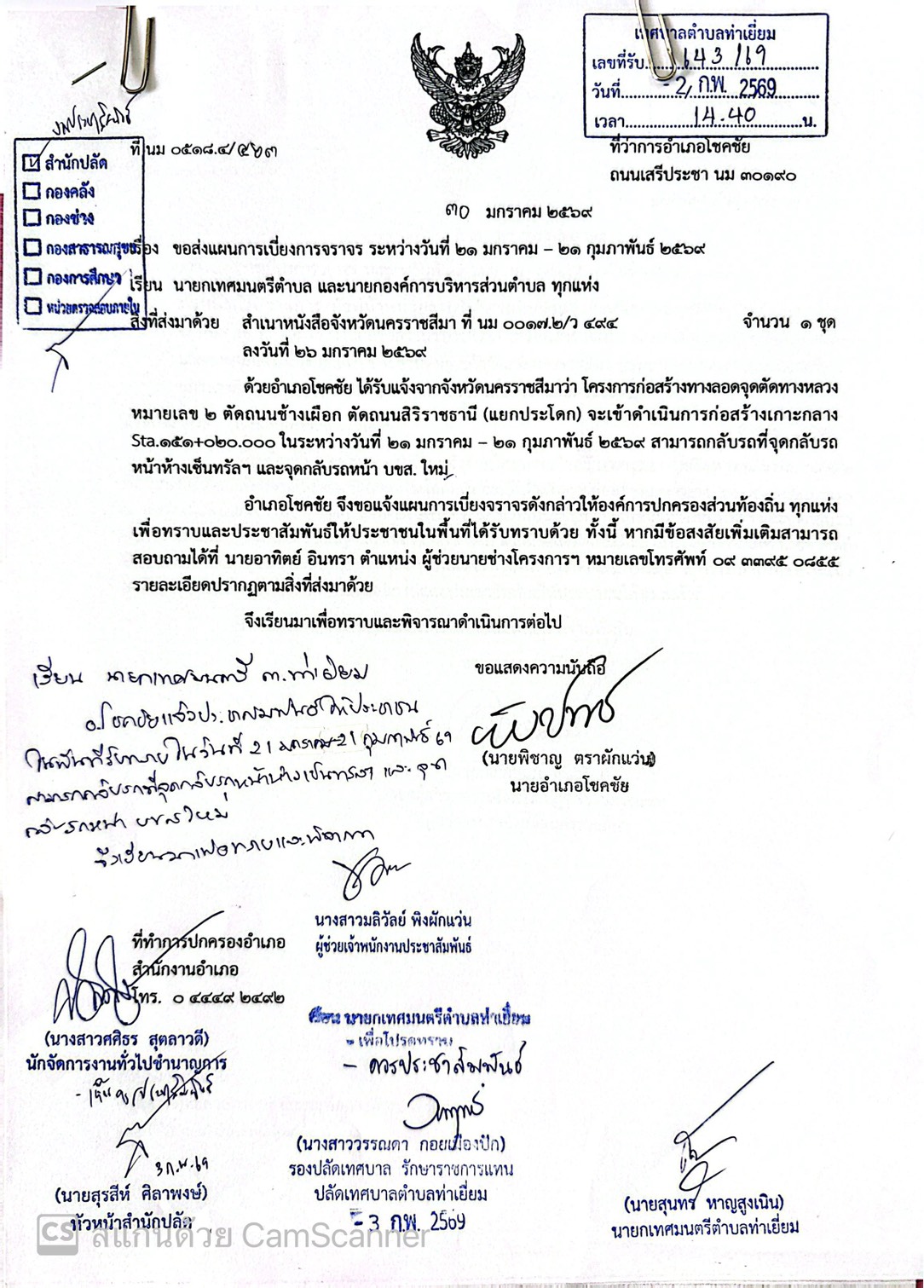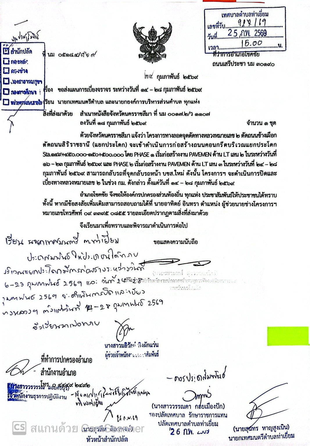 ขอประชาสัมพันธ์ แผนการเบียงการจราจร ระหว่างวันที่ 21 มกราคม -21 กุมภาพันธ์ 2569 เนื่องจากมีการดำเนินการก่อสร้างทางลอดจุดตัดทางหลวงหมายเลข 2