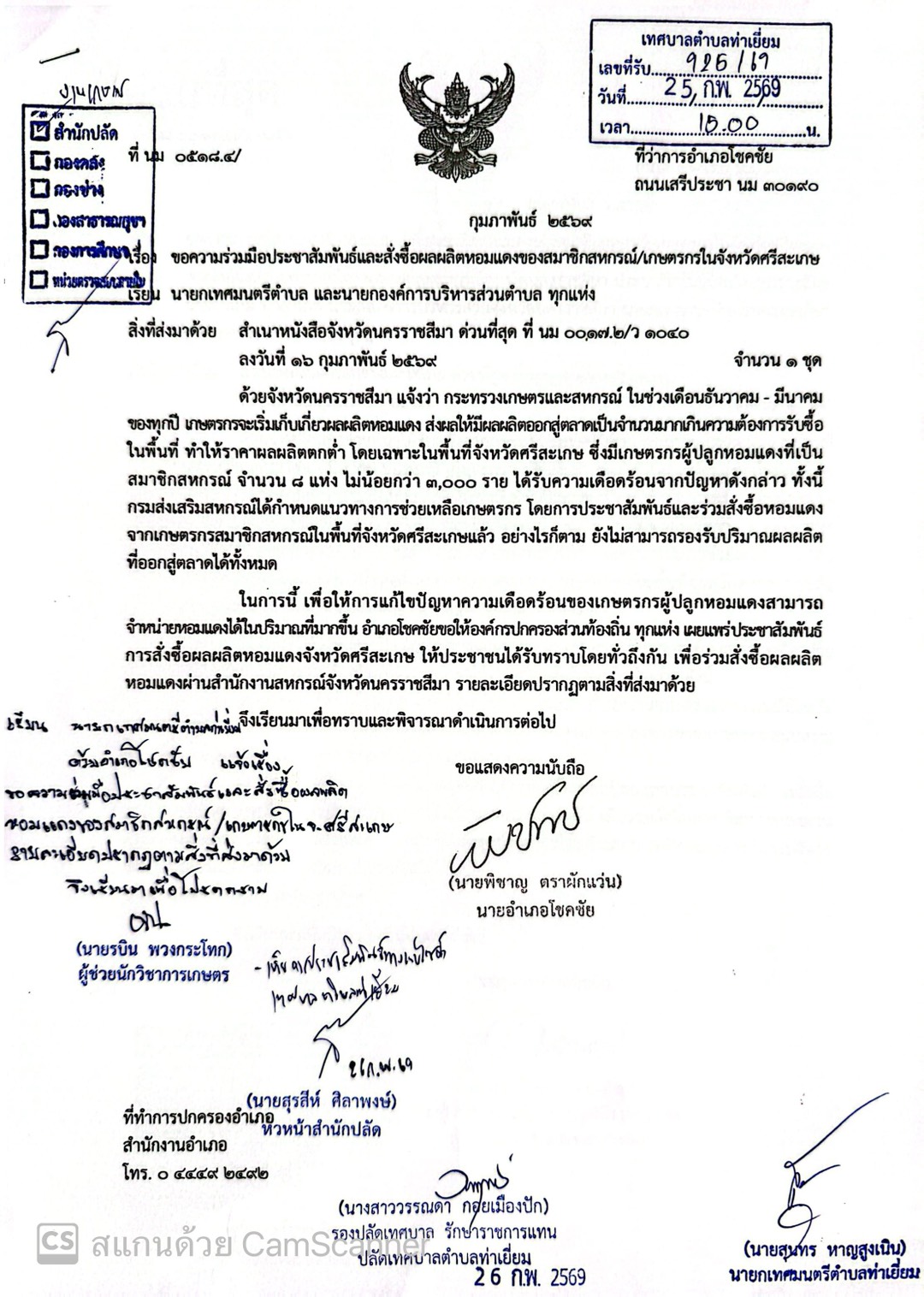 ขอความร่วมมือประชาสัมพันธ์และสั่งซื้อผลผลิตหอมแดงของสมาชิกสหกรณ์เกษตรในจังหวัดศรีสะเกษ