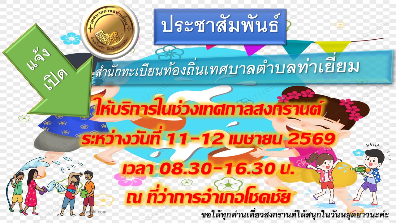 ⏰📌📢📣งานทะเบียนและบัตรเทศบาลตำบลท่าเยี่ยม เปิดให้บริการในช่วงวันหยุดสงกรานต์ ตั้งแต่วันที่ 11-12 เมษายน 2569 ณ ที่ว่าการอำเภอโชคชัย จังหวัดนครราชสีมา