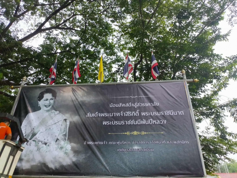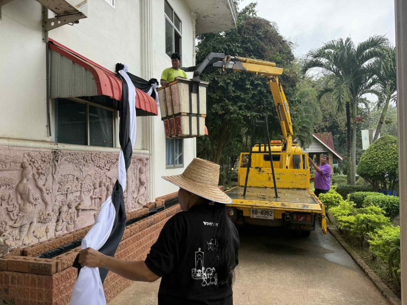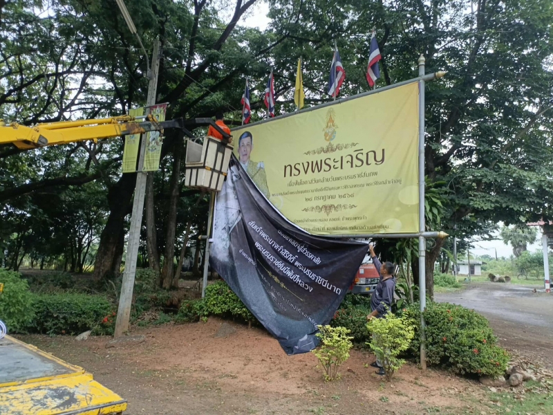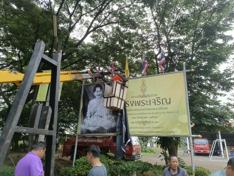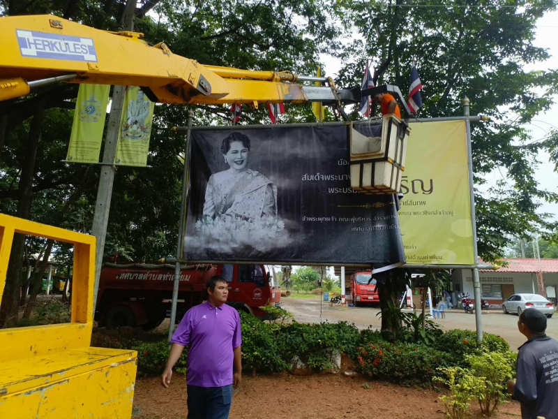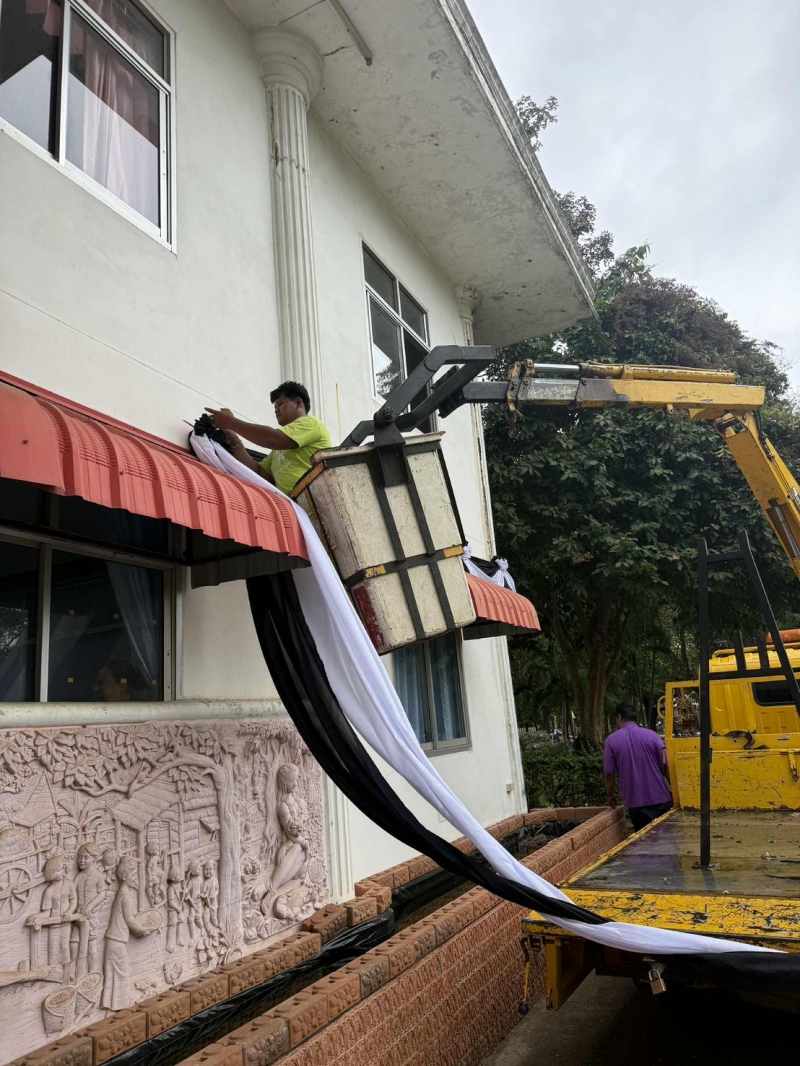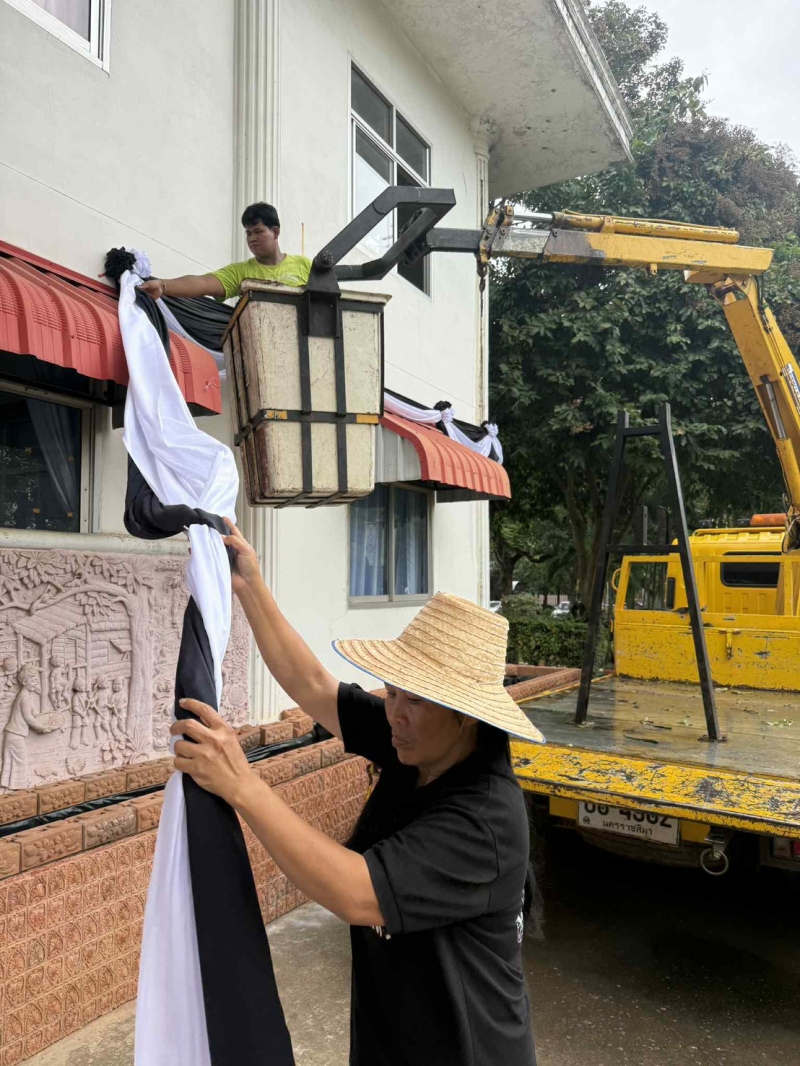 วันที่ 30 ตุลาคม 2568 เจ้าหน้าที่งานป้องกันฯและเจ้าหน้าที่กองช่างเทศบาลตำบลท่าเยี่ยม ดำเนินงานติดตั้งป้ายสมเด็จพระนางเจ้าสิริกิติ์ พระบรมราชินีนาถ พระบรมราชชนนีพันปีหลวง พร้อมผูกผ้าประดับอาคารสถานที่ส