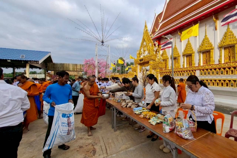 เวลา 06.30 น. พิธีเจริญพระพุทธมนต์และตักบาตรถวายพระราชกุศล