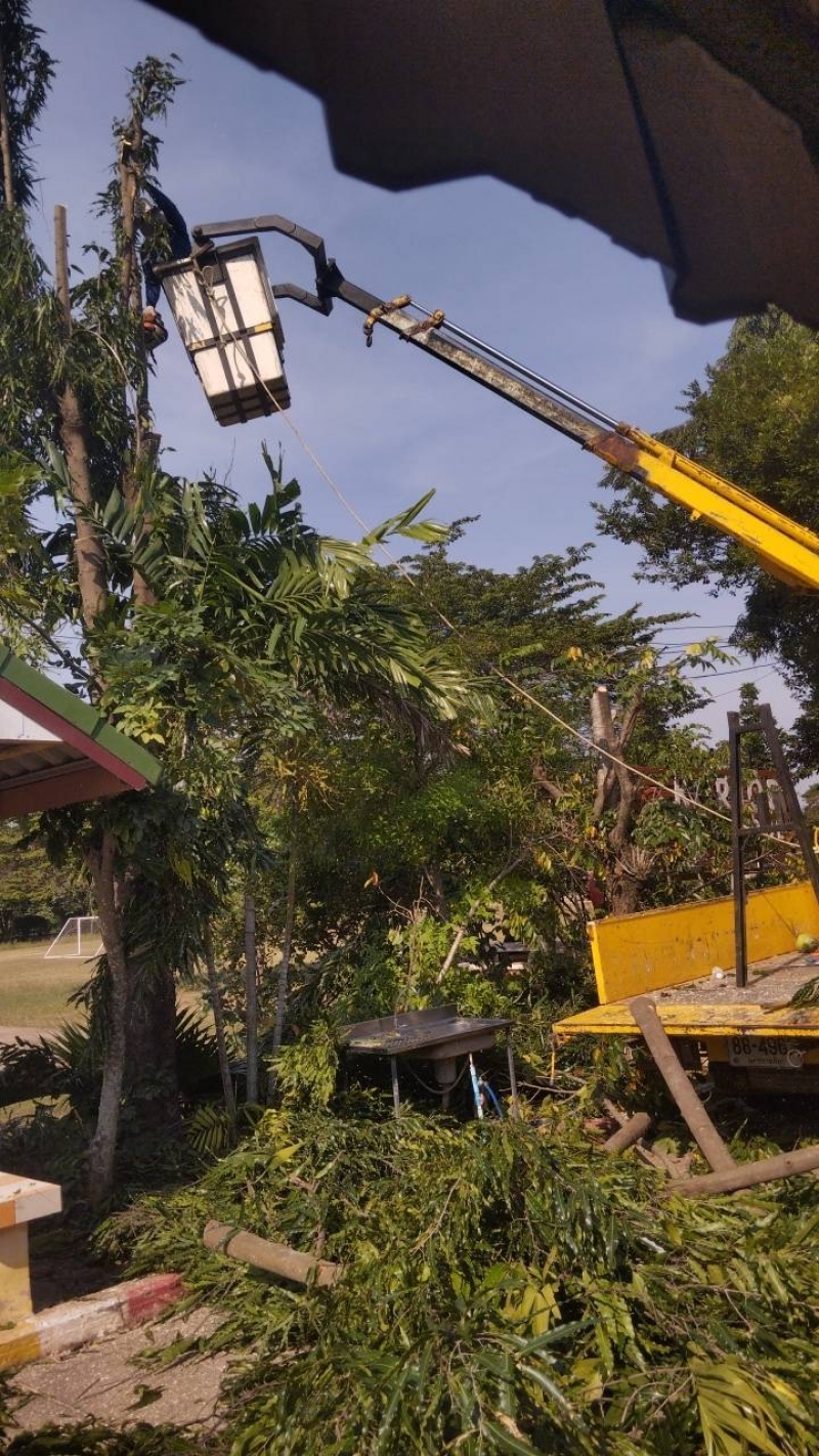 วันที่ 27 พฤศจิกายน 2568 นายสุนทร หาญสูงเนิน นายกเทศมนตรีตำบลท่าเยี่ยม มอบหมายให้เจ้าพนักงานป้องกันและบรรเทาสาธารณภัยและเจ้าหน้าที่กองช่าง เทศบาลตำบลท่าเยี่ยม ดำเนินการตัดต้นไม้ภายใน โรงเรียนบ้านกอโจด หมู่ 13 ต.ท่าเยี่ยม อ.โชคชัย เนื่องจากกิ่งไม้ปกคลุมสายไฟและจะเกิดอันตรายต่อเด้กนักเรียนหรือประชาชนได้