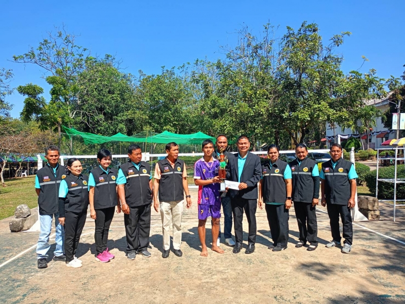นายสุนทร หาญสูงเนิน นายกเทศมนตรี พร้อมคณะผู้บริหารและสมาชิกสภาเทศบาลตำบลท่าเยี่ยม ได้มอบถ้วยพร้อมเงินรางวัลเซปักตะกร้อให้แก่ทีม