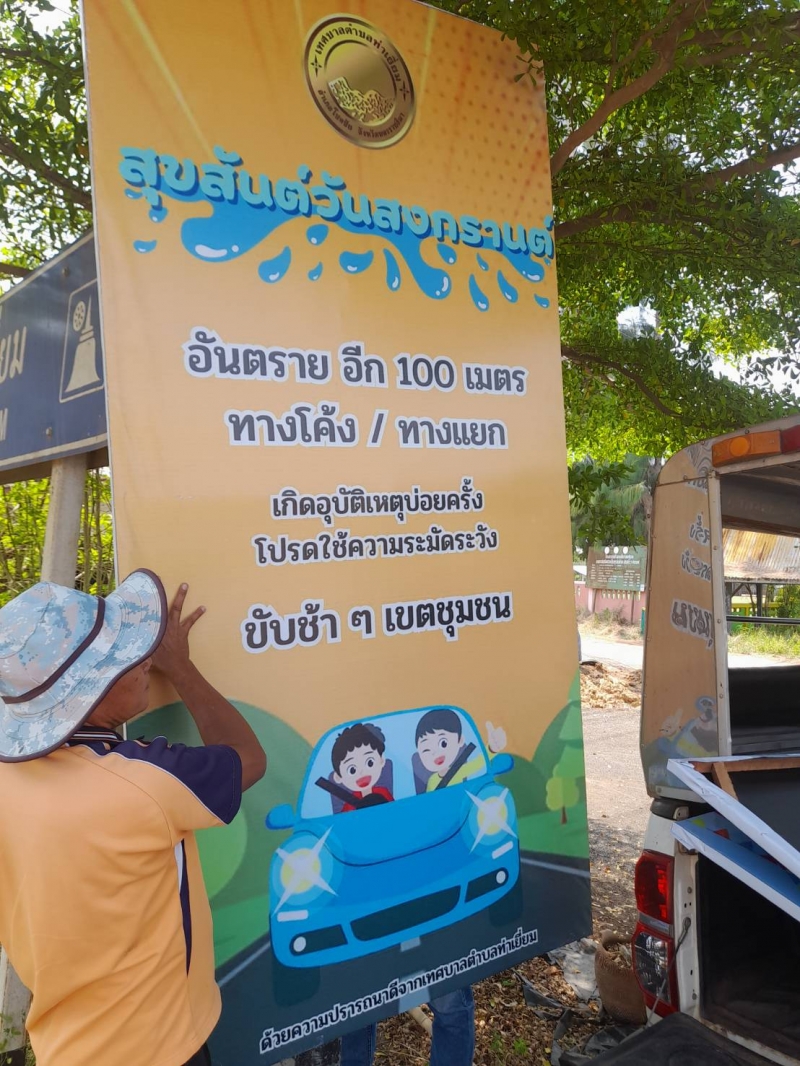 วันที่ 4 เมษายน 2566 งานป้องกันและบรรเทาสาธารณภัยเทศบาลตำบลท่าเยี่ยม ออกติดป้ายโครงการลดอุบัติเหตุทางถนน เพื่อเตือนประชาชนในการขับขี่รถในช่วงเทศกาลสงกรานต์ ประจำปี 2566